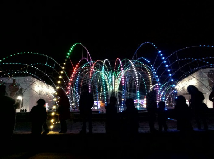 Помимо привычных арок, шаров и елок разного размера в городе появился новый световой фонтан диаметром 25 метров. Его установили на Каскадной площади.