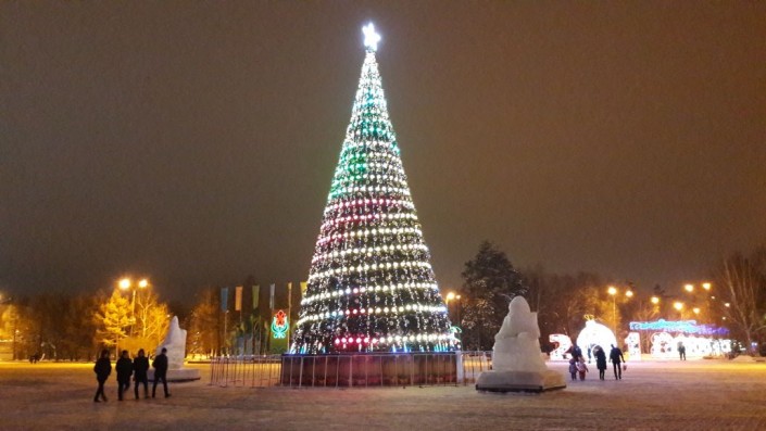 Две елки с ледовыми городками установлены на улице Конституции Казахстана (напротив городского и областного акиматов), еще одна украсила привокзальную площадь. Ежедневно на улице Конституции Казахстана до конца года будут проходить праздничные концерты, а 31 декабря ожидается фейерверк.