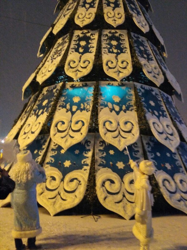 Усть-Каменогорск стал первым городом Казахстана, где в этом году на центральной площади установили елку. Лесную красавицу привезли в город еще в середине ноября с Черемшанского лесничества. Ее высота 24 метра, и чтобы нарядить главный символ новогоднего праздника, потребовалось более 500 шаров. На них и на оплату труда тех, кто украшал, из городского бюджета потратили порядка четырех миллионов тенге. Правда, после того как елку украсили, самой лесной красавицы стало совсем не видно.