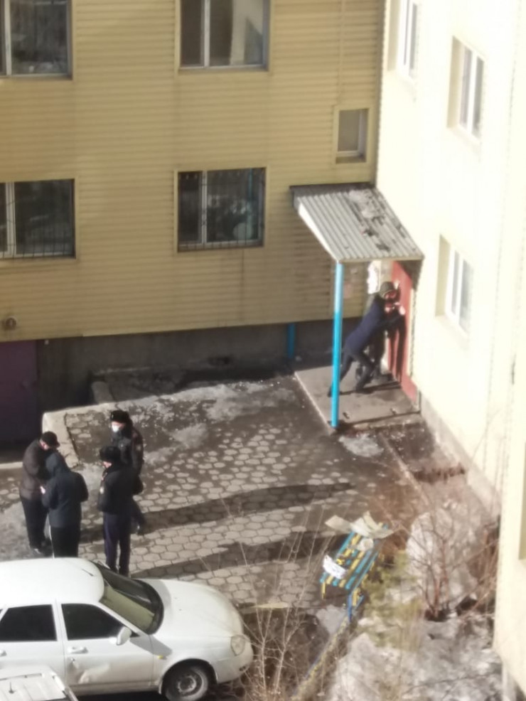 Подъезд многоэтажного дома в Караганде оцепила полиция. По данным санэпидемиологов, жители подъезда считаются контактными лицами и будут изолированы на две недели, передает корреспондент Tengrinews.kz.