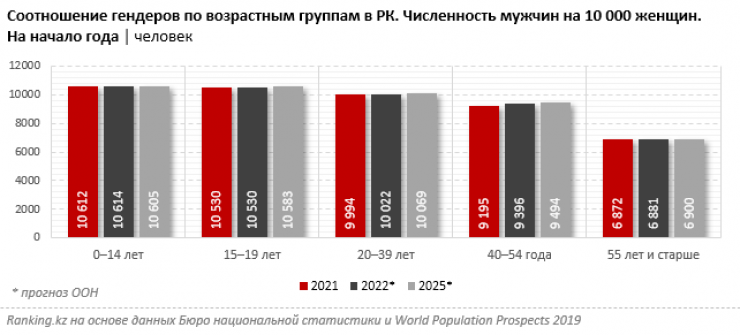 Такая статистика подтверждает прогнозы ООН, согласно которым продолжится сокращение разрыва между численностью мужчин и женщин в Казахстане.