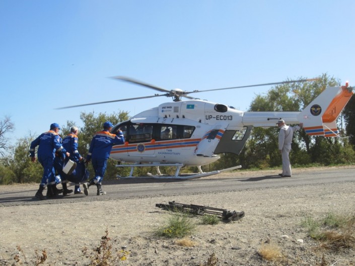 В конце июля текущего года с помощью вертолета МИ-171 "Казавиаспаса", экипажа и находящейся на борту оперативной группы Республиканского оперативно-спасательного отряда КЧС МВД РК были эвакуированы попавшие под камнепад пострадавшие туристы на леднике Скрябино в Чуйской области Кыргызской Республики.