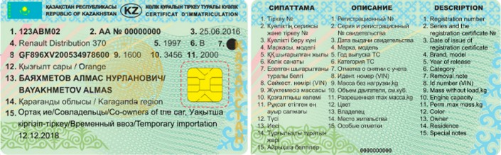 - отметку о снятии с учета (будут не разрезать, как старый техпаспорт, а пробивать дыроколом - прим. Kolesa.kz);