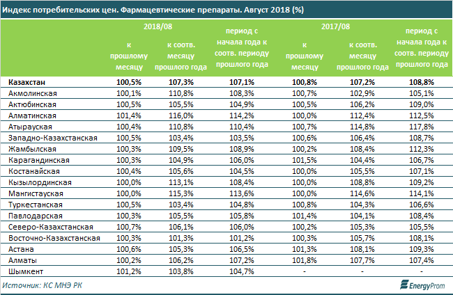 В региональном разрезе самый заметный годовой рост цен зафиксирован в Алматинской (16 процентов), Мангистауской (15,3 процента) и Кызылординской (13,1 процента) областях.