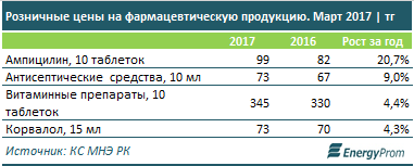 "Розничные цены на фармпродукцию поднялись за год ощутимо: так, ампициллин подорожал на 20,7 процента, антисептические средства - на 9 процентов, витамины - на 4,4 процента, корвалол - на 4,3 процента", - говорится в материалах исследований.