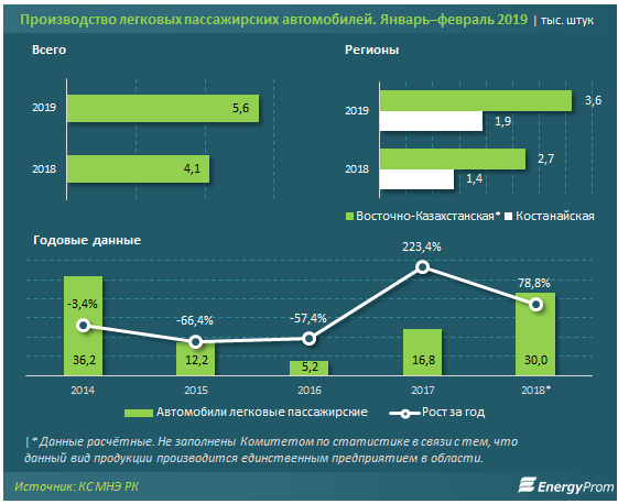 По итогам первых двух месяцев текущего года казахстанский автопром выпустил 5,6 тысячи авто. Это на 34,6 процента больше, чем годом ранее.
