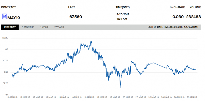 Цена на нефть марки Brent составляет 67,56 доллара за баррель.