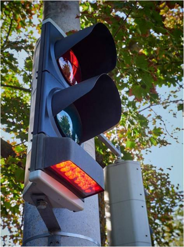 Также до конца года на пешеходных светофорах будут установлены дополнительные световые устройства для концентрации внимания и визуального восприятия красного сигнала светофора. При этом красный свет падает на тротуар и на экран сотового телефона пешехода.