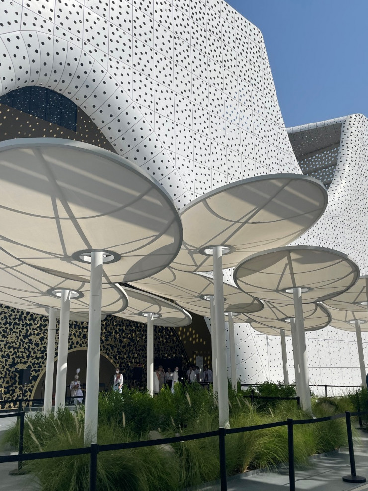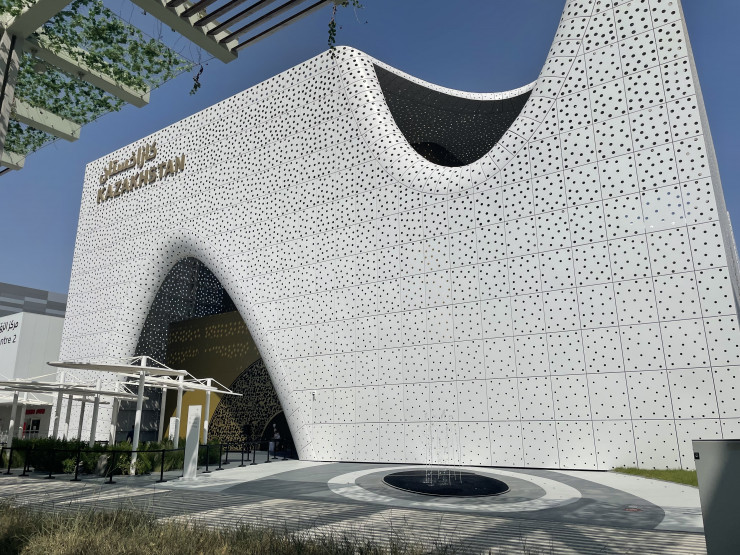 До казахстанского павильона от входа на территорию выставки нужно ехать на внутреннем автобусе. Зато отсюда до главного павильона Объединенных Арабских Эмиратов всего 5 минут ходьбы.