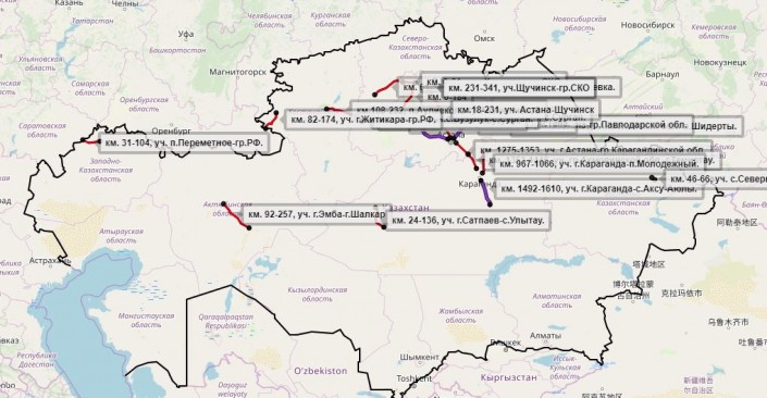 Жезказган - Петропавловск (536-552-й километры, поселок Бузулук - поселок Сурган);