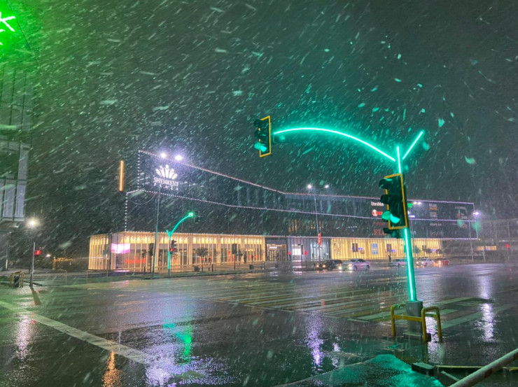 Резкое понижение температуры воздуха в городе с 18-20 до 4-6 градусов тепла, сопровождающееся осадками, за несколько дней до этого спрогнозировали синоптики. 13 марта выдалось в Шымкенте дождливым, а уже в темное время суток на тело мегаполиса упали первые снежинки.