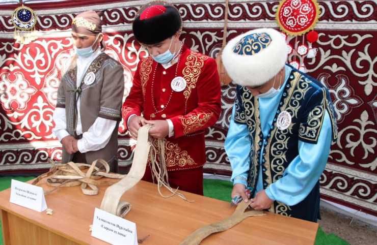 "Наши предки верили в духовную и магическую силу камчи. У казахов камча - это особый предмет, который висит в доме на почетном месте. Все детали изготавливаются вручную. На плетение в среднем уходит 3-4 дня. Ее изготавливают из натуральной сыромятой кожи животного. Рукоять для камчи сделана из тамариска, который растет у нас в степи", - сказал Колганат Сериков.