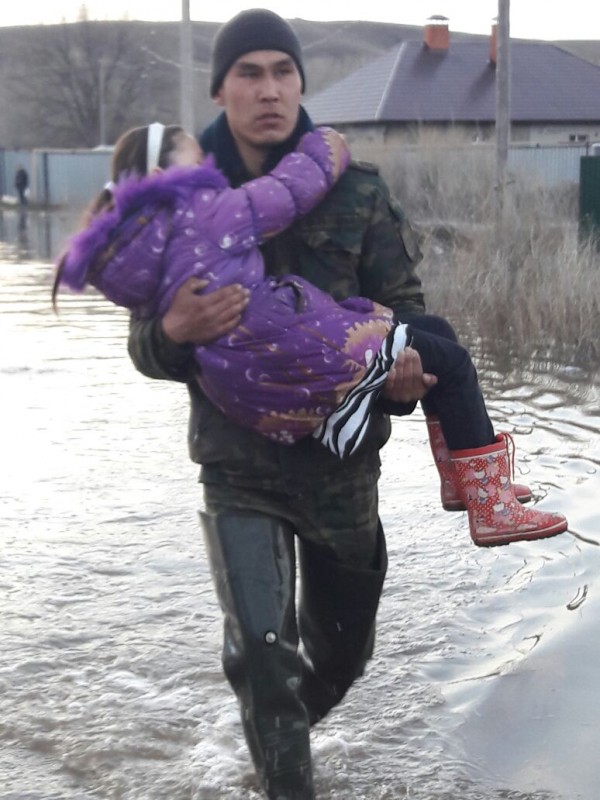 Талгат Чалов. 16 апреля при эвакуации людей и домашней скотины из поселка Ягодный в Акмолинской области было спасено 12 человек. Люди были эвакуированы и доставлены в местную школу для временного проживания.