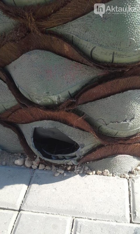 В Актау строительная организация, занимающаяся благоустройством набережной, пожаловалась на вандалов, которые успели испортить несколько недавно установленных искусственных пальм, сообщает ИнАктау.