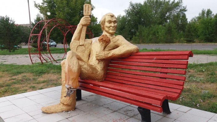 Скульптура известного шоумена установлена на набережной в Усть-Каменогорске и пользуется большой популярностью у горожан. Но не так давно часть ноги была отломлена.