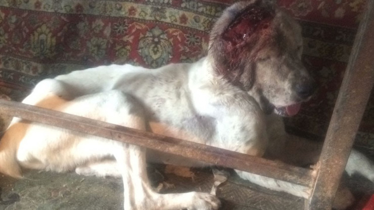 Пострадавшая в результате боев собака. Фото: общественное объединение по защите животных "Инукобо"