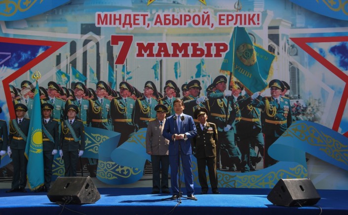 "Как сказал Елбасы: "Вооруженные Силы - это главный гарант безопасности и нерушимый оплот суверенитета, мирного покоя нашей страны". Сегодня мы отдаем дань уважения защитникам Отечества всех поколений Казахстана. Имена Карасай батыра, Богенбай батыра, Бауыржана Момышұлы, Леонида Беда, Бориса Керимбаева и многих других навечно останутся в памяти нашего народа. Мы всегда будем гордиться мужеством и отвагой наших героев и ветеранов, победивших в Великой Отечественной войне", - сказал в ходе выступления аким Алматы Бауыржан Байбек.