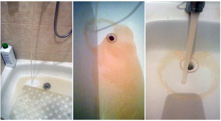 Вода, текущая из кранов в домах. Фото предоставлены жителями микрорайона "Алгабас"