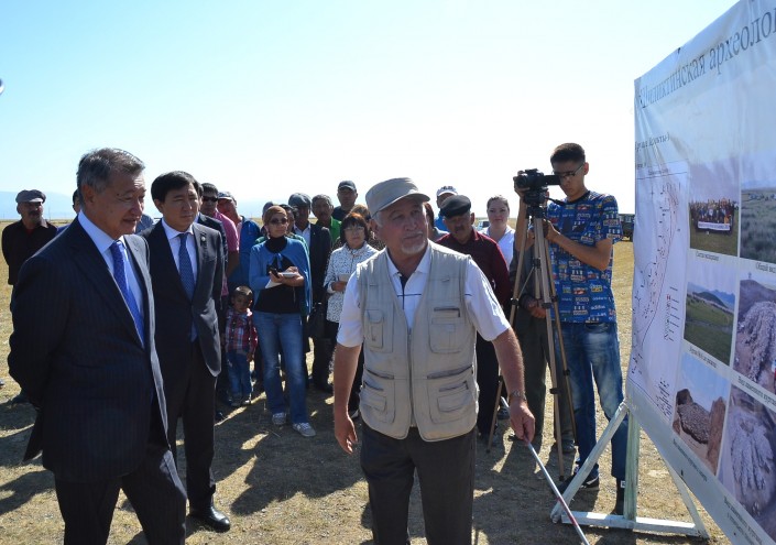 На месте раскопок во время рабочей поездки в Зайсанский район побывал аким области Даниал Ахметов. Исследование самого крупного кургана началось в мае и уже близится к завершению. Высота памятника превышает восемь с половиной метров, а диаметр составил 88 метров. Могильное сооружение датируется седьмым веком до нашей эры. Под земляной насыпью скрывалась каменная, защищавшая деревянный сруб. Недавно ученые вскрыли гробницу и обнаружили могилы двух человек.