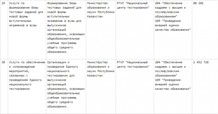 Еще 80,2 миллиона тенге выделяется на услуги "по формированию базы тестовых заданий для новой формы вступительных экзаменов в вузы".