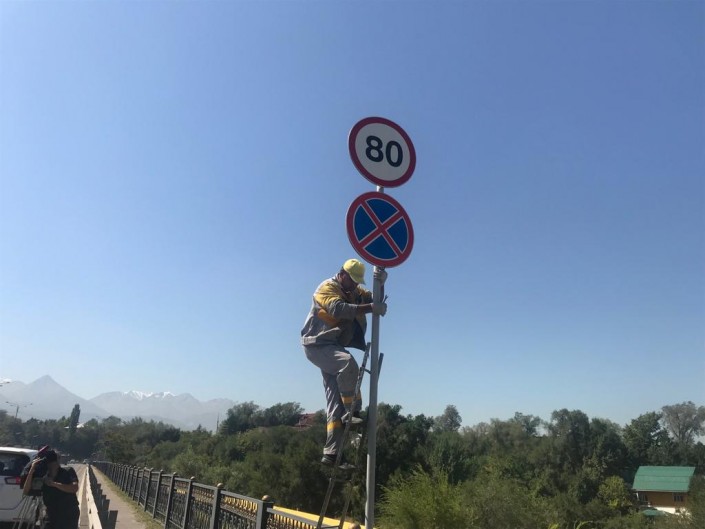 Коммунальные службы устанавливают на Аль-Фараби и ВОАД новые дорожные знаки, разрешающие передвигаться со скоростью до 80 километров в час.