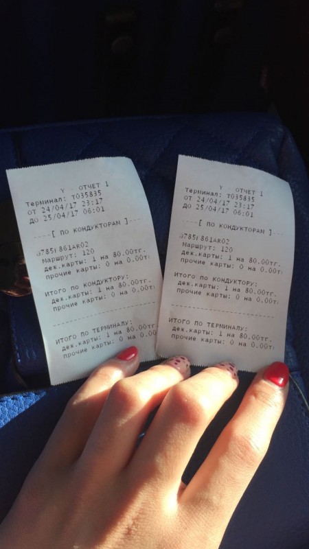 Утром 25 апреля в автобусе 120 маршрута в Алматы пассажирам выдавали вместо билетов Y-отчеты, передает корреспондент Tengrinews.kz. Об этом сообщили очевидцы.