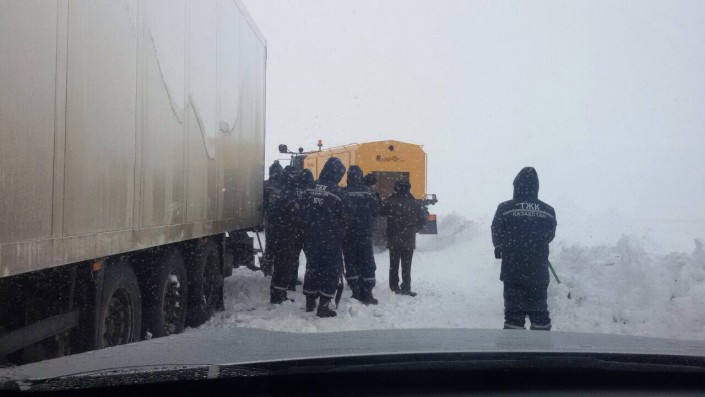 Водители, застрявшие из-за метели на дорогах в Актюбинской области, критикуют работу спасателей Фото пресс-службы Комитета по чрезвычайным ситуациям МВД РК.