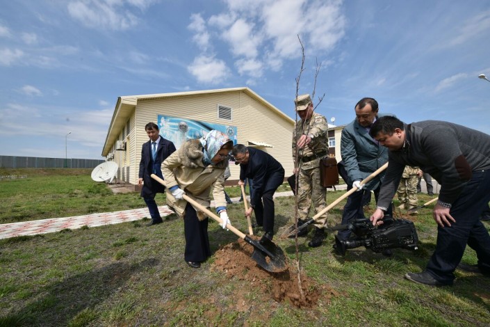 О визите сенаторов пограничникам части 2020 ПС КНБ РК будет напоминать небольшой фруктовый сад. Яблони сажали все гости. Лопату в руки взяла даже единственная в делегации женщина.