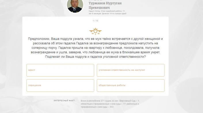 Верховный Суд Казахстана запустил интернет-викторину, рассчитанную на пользователей глобальной сети, передает корреспондент Tengrinews.kz.