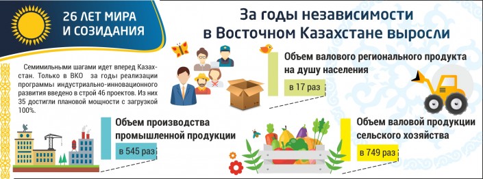 Проект "ВКО в цифрах" представит достижения области за 26 лет независимости. Это не сухие цифры отчетов, а яркая и доступная инфографика. Цифры и факты позволяют в динамике отследить развитие Восточного Казахстана в наиболее значимых сферах, таких как  бизнес, образование, здравоохранение. И передают четкую картину того, насколько уверенными и стремительными шаги молодой Казахстан движется в современное будущее.