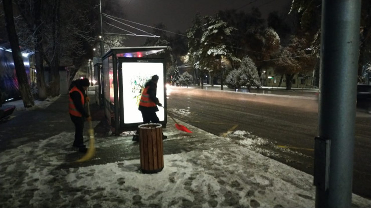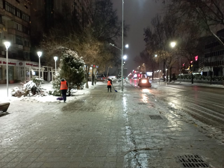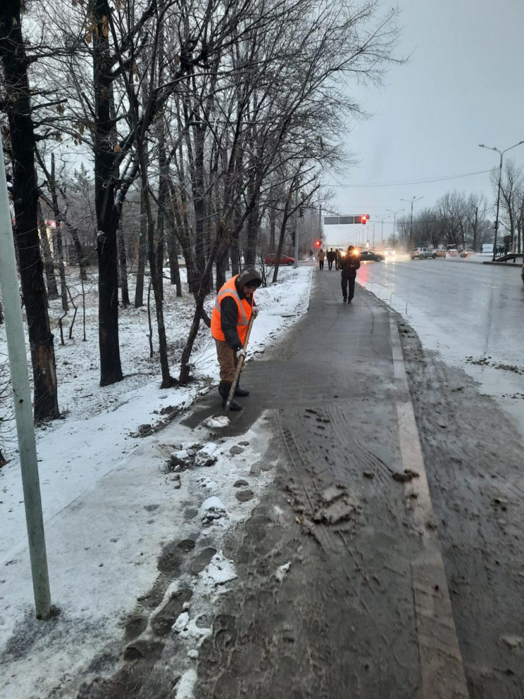 "С утра задействовано 562 единицы спецтехники, 160 пескоразбрасывателей и 1493 дорожных рабочих. В районных акиматах и акимате города организовано круглосуточное дежурство по контролю за производством работ по уборке снега", - добавили в пресс-службе акимата.