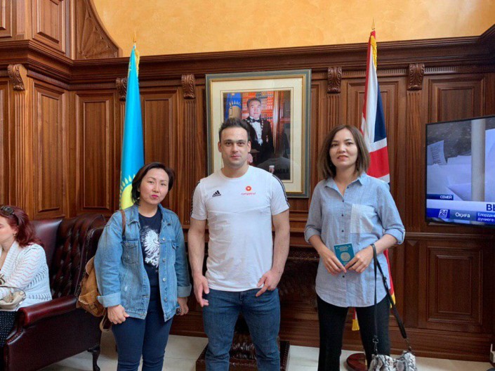 Знаменитый тяжелоатлет Илья Ильин проголосовал в посольстве Казаxстана в Лондоне.