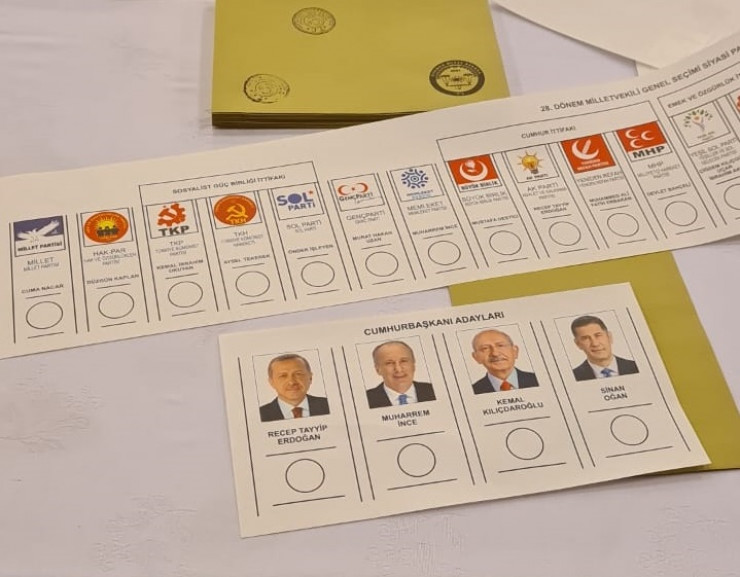 Вот так выглядит избирательный бюллетень. В нем представлены фото четырех кандидатов в президенты Турции. Это действующий президент Реджеп Тайип Эрдоган, председатель оппозиционной Народно-республиканской партии Кемаль Кылычдароглу, глава Партии Отечества Мухаррем Индже и выдвиженец от "Альянса ататюркистов" Синан Оган.