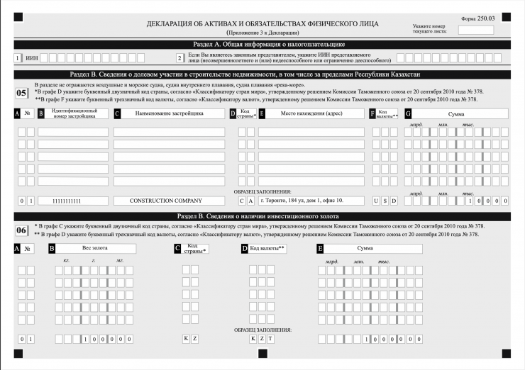А вот как выглядит первая "входная" декларация и приложения к ней (форма 250.00). Рекомендуем ознакомиться с ее содержанием и готовить сведения о ваших активах и обязательствах, которые туда нужно будет вносить.