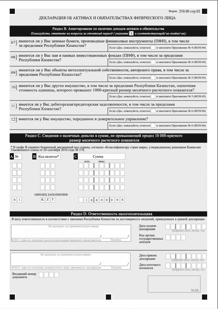 Как выглядит обязательная декларация об активах и обязательствах