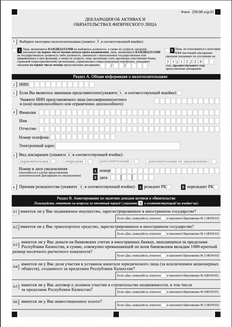 В самом начале гражданам нужно будет заполнить входную (самую первую) декларацию (форма 250.00). По данным ДГД Алматы, только в Алматы в 2023 году сдаче декларации подлежат более 100 тысяч работников госучреждений, и это не считая их супругов.