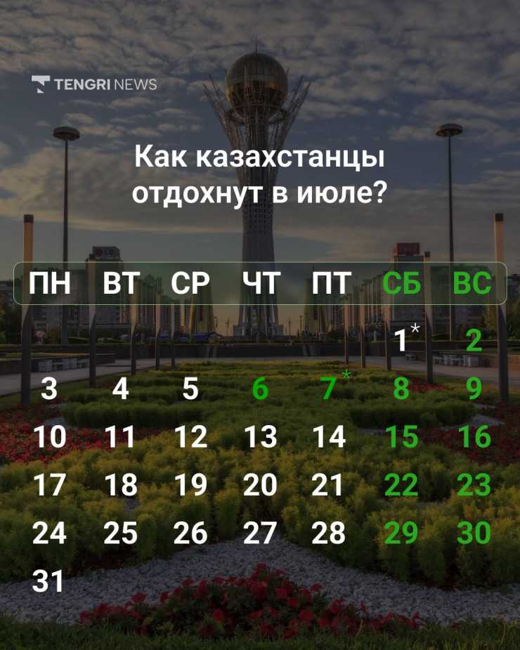 Таким образом, при пятидневной рабочей неделе казахстанцы отдохнут на День столицы в 2023 году четыре дня: 6, 7, 8 и 9 июля.