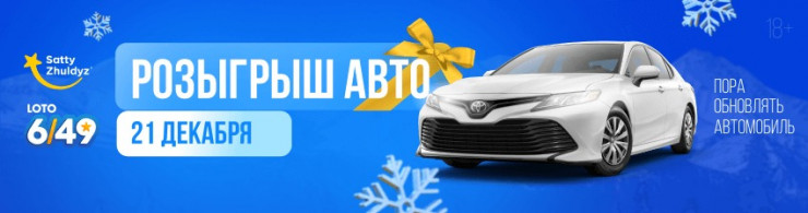 Национальная лотерея "Сәтті Жұлдыз" создает атмосферу предновогодних чудес, сюрпризов и подарков. Уже через несколько дней состоится розыгрыш автомобиля Toyota Camry в лотерее Loto 6/49. Для этого нужно приобрести ЛотоНабор "Автомобиль", который состоит из шести билетов, всего за 1800 тенге. Количество ЛотоНаборов, которое может купить один участник, не ограничено.
