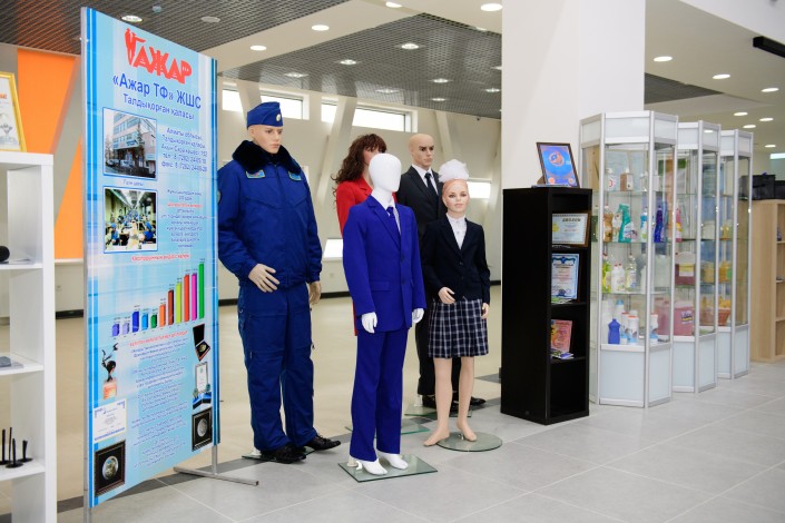 Вниманию участников и гостей мероприятия была представлена выставка продукции отечественных товаропроизводителей, среди которых аккумуляторный завод "Кайнар-АКБ", ТОО "Алматинские краски", ТОО "Хамле Компани ЛТД", ТОО "Метакон", заводы по производству молока и молочной продукции "Аркабай", "JLC cүт", крахмалопаточный завод и другие.