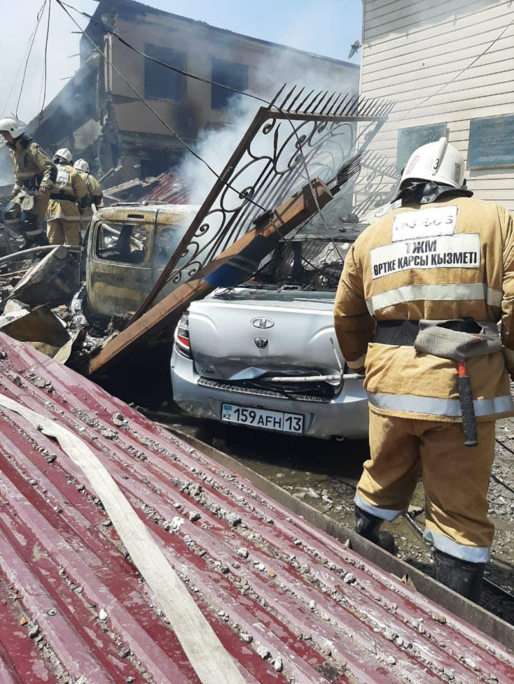 "По прибытии пожарных подразделений установлено, что в результате взрыва произошел пожар в двухэтажном отдельно стоящем здании, принадлежащем ТОО "Межбольничная 138 аптека", общая площадь здания - 360 квадратных метров, стены - кирпичные, кровля - профлист по деревянной обрешетке. В 12.06 пожар локализован, предварительная площадь пожара 55 квадратных метров. В ликвидации ЧС задействованы 37 сотрудников и 9 единиц техники ДЧС. Причина взрыва устанавливается, работы по ликвидации ЧС продолжаются",- рассказали в пресс-службе ДЧС Шымкента.