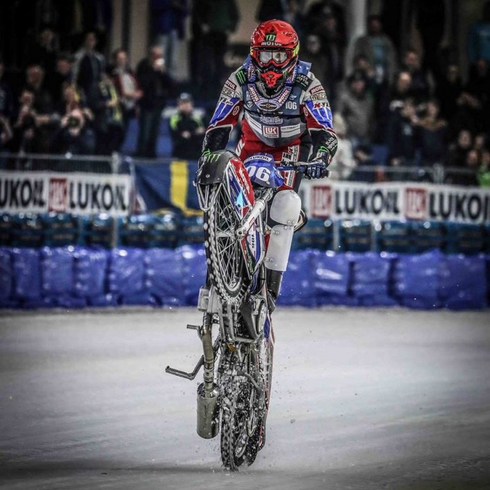 На мотоциклах с шипами размером с человеческий палец они устроят настоящие ледовые гонки. 16 бесстрашных гонщиков, вооруженных своими искрометными байками, будут бороться за главный приз - кубок мира по мотогонкам на льду.