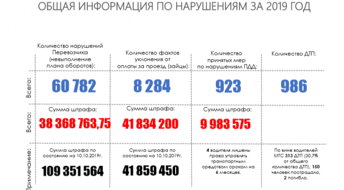 Также, по данным "Астана LRT", с начала года водителями автобусов зафиксировано 923 случая нарушений правил дорожного движения. Четырех водителей лишили права управлять транспортом сроком на шесть месяцев. Сумма штрафов составила 9 983 575 тенге.