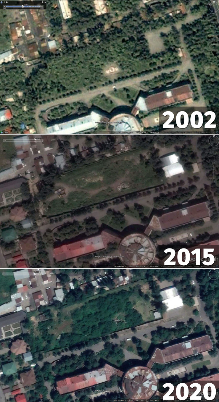 "На снимках от 2002 года, взятых из открытых источников Google Earth, видны несколько деревьев и небольшая поросль, которая разрослась, потому что за участком никто не ухаживал.