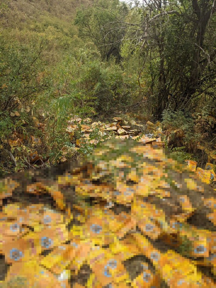 "Это как могло произойти? Вдоль притока Талгарки, выше городища Талхиз, огромная территория усыпана новой и пустой упаковкой от семечек! Это как могло случиться? Есть у кого-нибудь версия?" - написала у себя на странице в Facebook Ольга Агапова.
