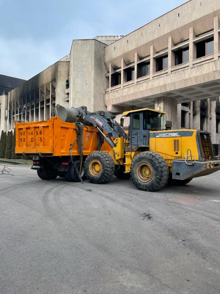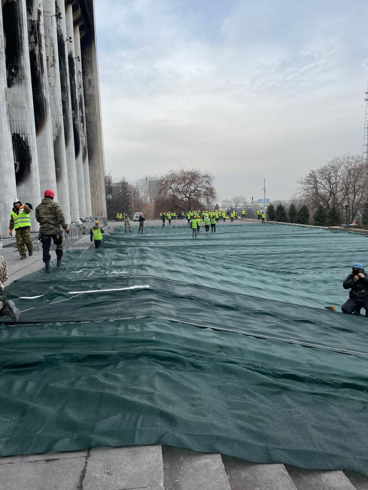В Алматы начата работа по расчистке здания городского акимата после пожара, передает корреспондент Tengrinews.kz.