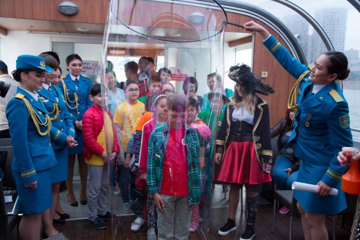 Женщины-военнослужащие устроили праздник на пароходе для детей в Астане