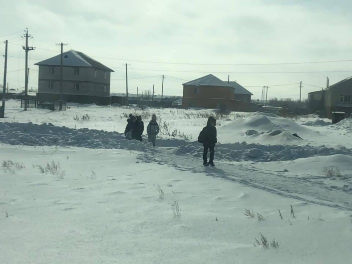Дети идут по заснеженному полю. Отклоняться от протоптанной тропинки нельзя. Разве это объяснишь детям. Директор школы попросила оставить три люка для замены крышек на территории школы. Оставили.