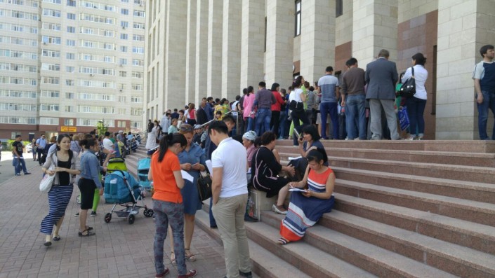 По словам одной из жительниц Астаны, придя утром к 08.30, она была в очереди 237-й. "Вот, до сих пор стоим. Сейчас обед. А принимают заявления вроде как только до 17.00" - возмутилась женщина.