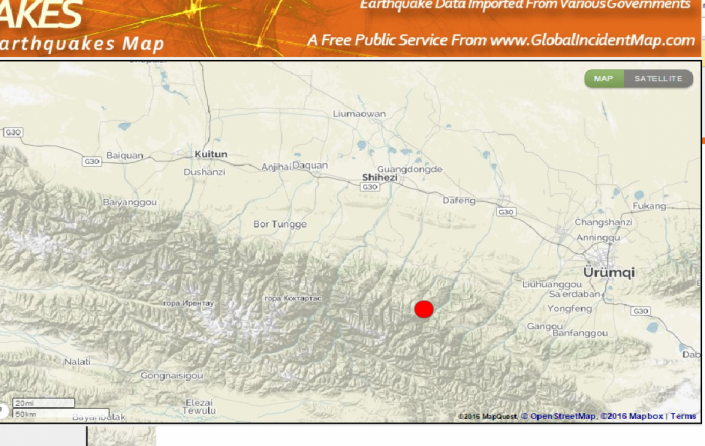 Магнитуда колебаний составила 6,2, эпицентр находился в 94 километрах от Урумчи. Отголоски дошли и до Казахстана.