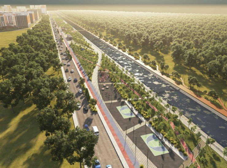 Первая очередь - от проспекта Улы Дала до улицы Онгарсыновой. Площадь озеленения - 18 319,4 квадратного метра. Площадь тротуарных покрытий составит 20 652,6 квадратного метра.